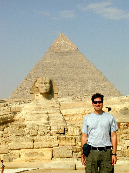 Driver: Are you #&!#%@^ to #%*$#$% near the #*^$!#(^? Dan: Where? Driver: Are you going to #%*!#$% on the coast? Dan: To where? Driver: %$(%$*, it has great &*_&*_* and diving. Dan: Diving? Driver: Yes. Dan: No, we are not going there. What do they dive from? A diving board, or a cliff, or what? Driver: Dive? Dan: Yes, dive. From what? Driver: Ahhh, &*$%$&+# underwater. Dan: Ohhh, that kind of diving. Sorry. No, we are not going there. Driver: They have mooses *)#$#&*^ there too. Dan: Mooses? Driver: Yes mooses? Dan: Mooses? Driver: Mooses. Dan: Mooses, near the diving? Driver: Yes, they have mooses. Dan: Hmmm, ok, you know we have mooses in the northeast United State. Driver: Mooses? Dan: Yes, mooses. Driver: Ughh, you have mooses, too? Dan: Yes. Driver: How do you have Moses? Dan: Oh, Moses! No, we do not have Moses, sorry. Driver: Ughh, sorry my English no good. Dan: No, I am just an idiot! Since this exchange we have referred to many other miscommunications as 'mooses' and laughed out loud each time! Getting ThereAs early as Cape Town (3 weeks earlier) we had tried to organize an A&K guided tour of Cairo, thinking that it would be better to organize it with a reputable company than do it when we got there. However, we had many communication problems with the different A&K offices, so we ended up with no plans whatsoever. We made reservations at the Four Seasons in Giza on the Nile, figuring that a nice hotel could help organize tours. We also organized transportation from the airport via the hotel, to not deal with the expected hoard of tourist-seeking taxis at most airports. We flew from Johannesburg to Nairobi to Khartoum, Sudan to Cairo. Because of our commitment to never again use Egypt Air (see Nairobi-Getting There), we had a short stopover in Sudan, during which we were not allowed to leave the plane. When we arrived at the airport around midnight, the airport was extremely crowded. We quickly saw a gentleman holding up a Four Seasons sign, and the Four Seasons airport manager immediately identified us, whisked us to pay the $15 each for visas, to fill our forms, then through customs, pick up bags, past the masses of people, and into the limousine. There were at least a thousand people, most dressed in the white garb from Ramadan travels, waiting in line to pass through customs, but we were guided through a 'special' passport checker with no line. We could not have tipped him enough for that special service.