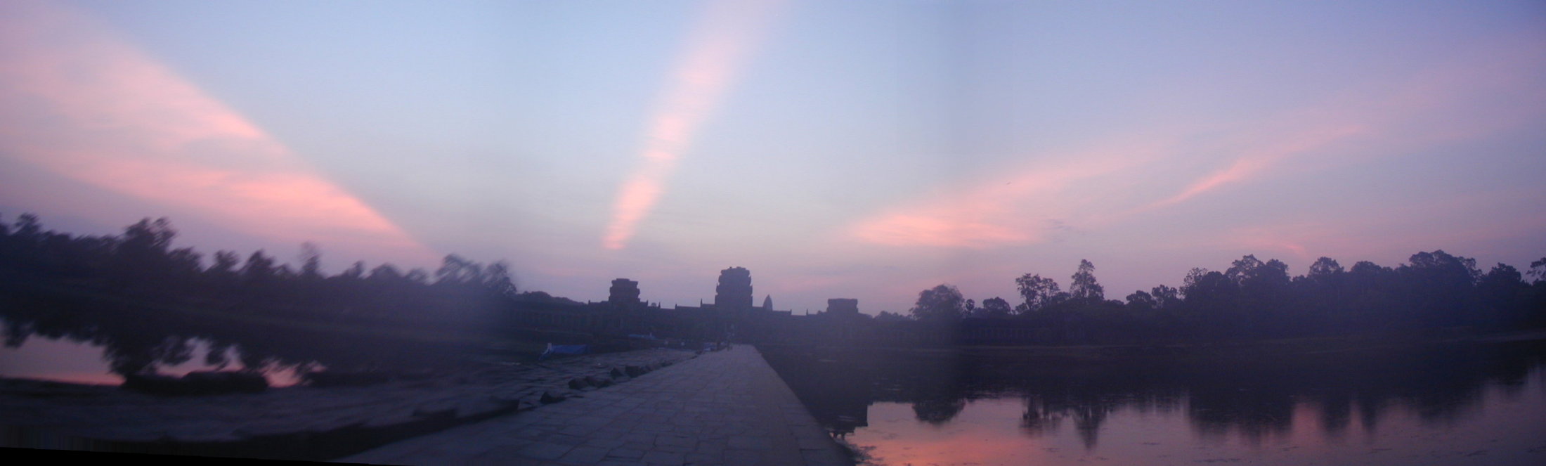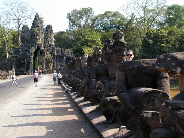 can see the temples of Angkor Wat. The stone path continues across